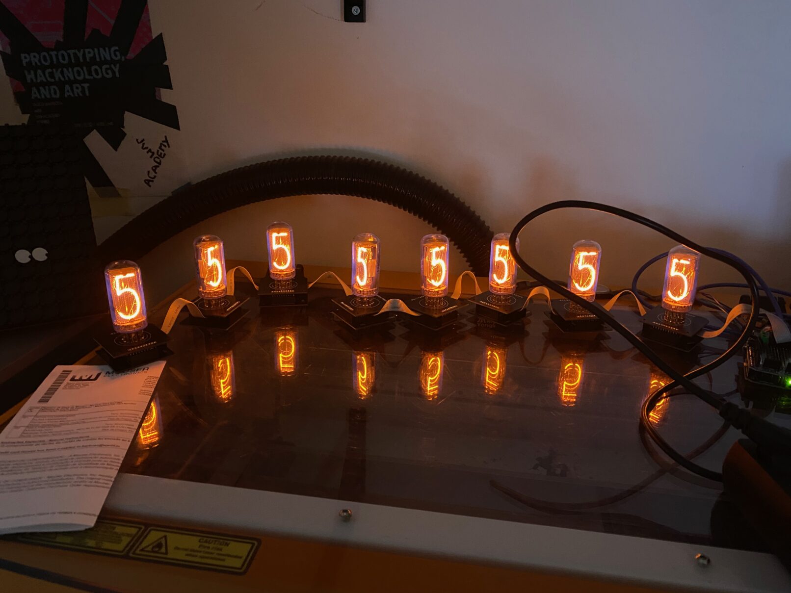 Our role was to build the software and hardware for the solution. The Objective was to design a custom interface ( hardware and software ) for some vintage 170V IN-14 Nixie tubes that we bought from an old Russian factory.