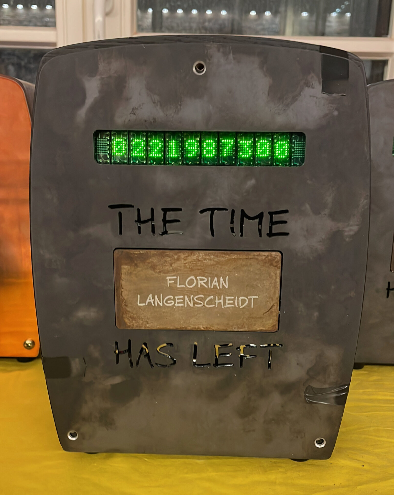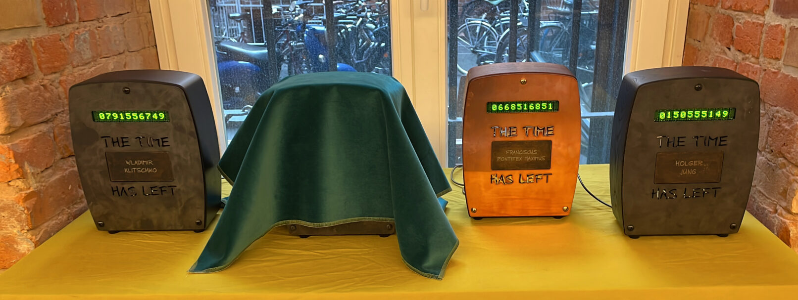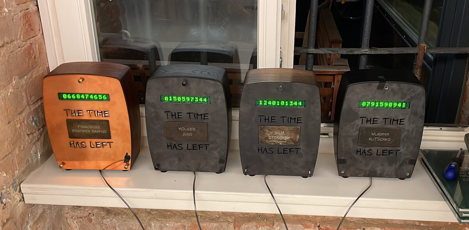 We designed, prototyped and manufactured 6 clocks. They are connected to GPS to get the time, and count the seconds until the owner reaches the average age of life from his home country.
